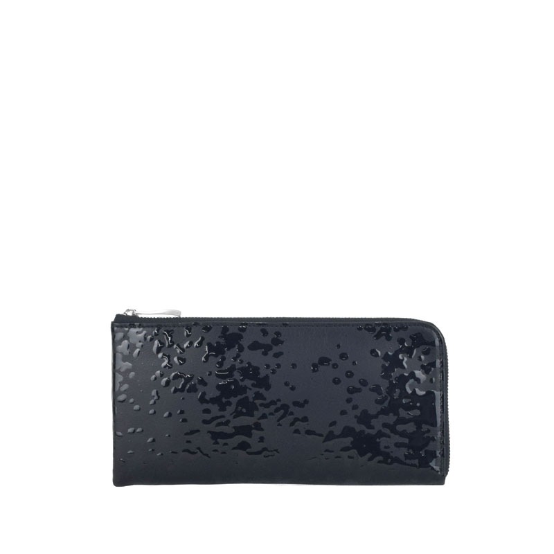 イタリア製キップスキンに曲線幾何学柄の型押しを施し、凹部分にのみ箔加工を施した贅沢な革。