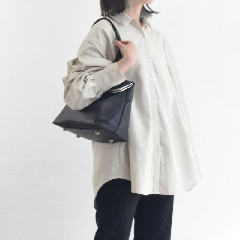 ハンドルは肩掛け可能で、口金の取付角度を前に傾斜させているため、肩にかけたままでもスムーズに開閉できます。