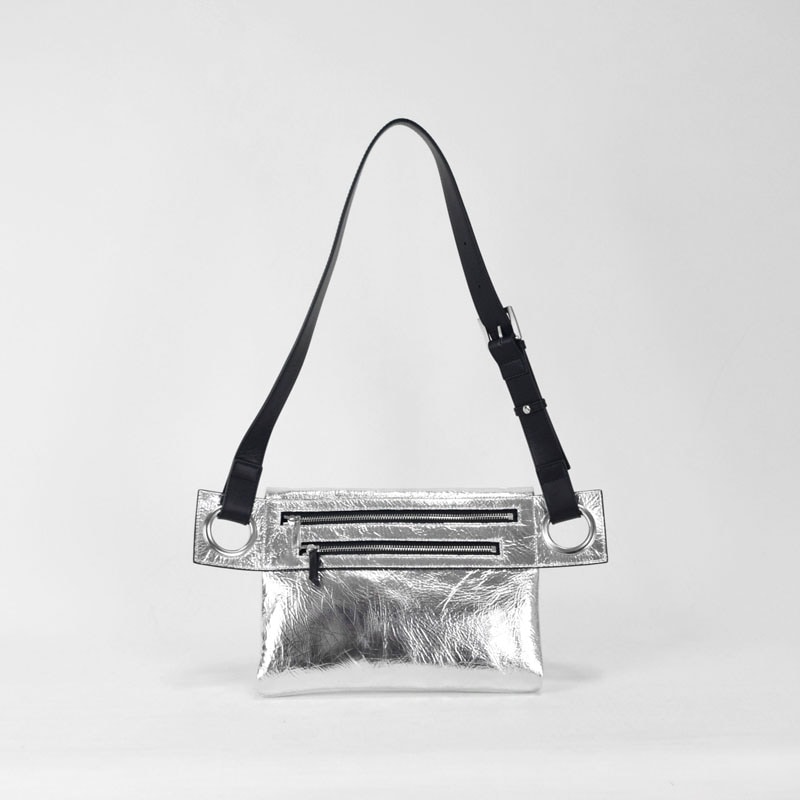 牛革に高光沢の箔加工を施した後、シワ加工を加え、表情豊かに仕上げています。