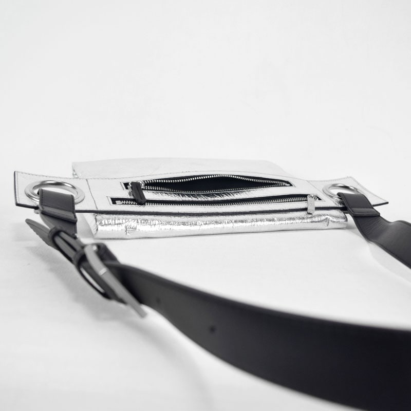 開口部やポケットは身体側に配されており、使いやすさと防犯性を両立。