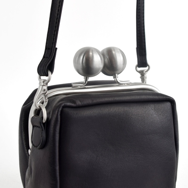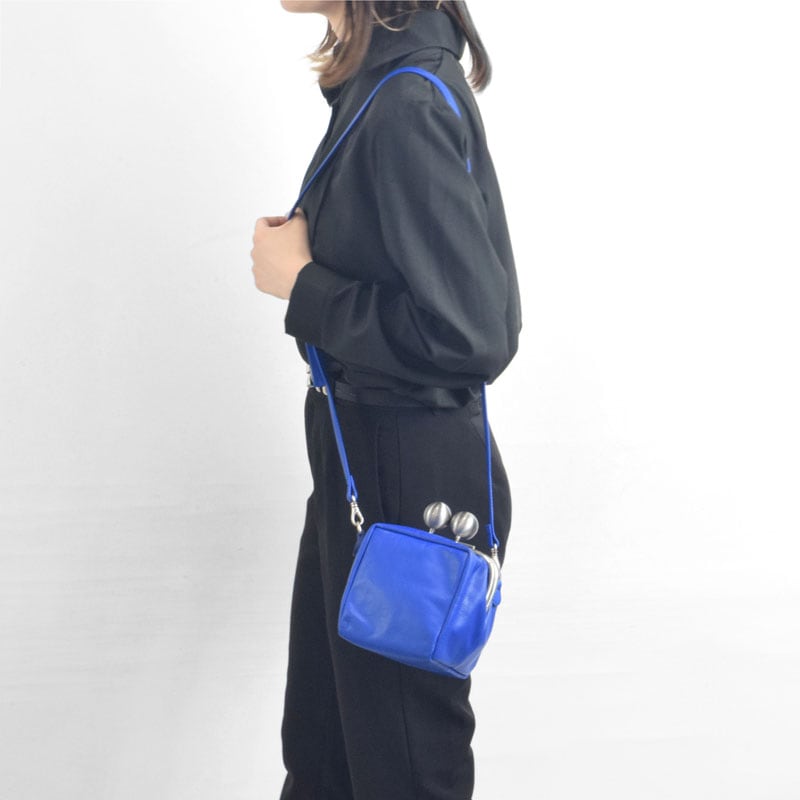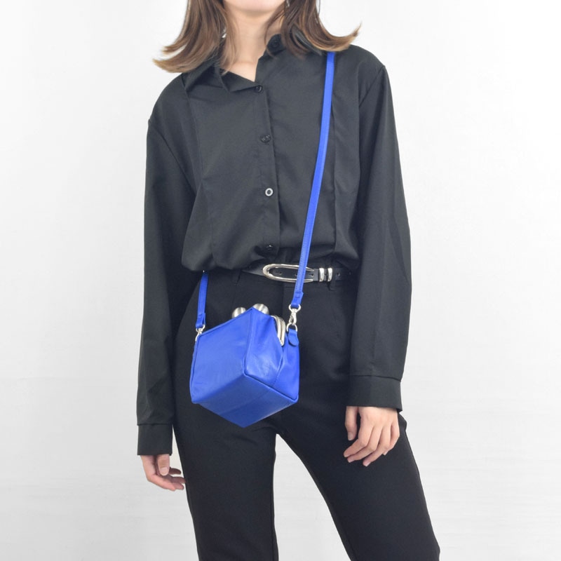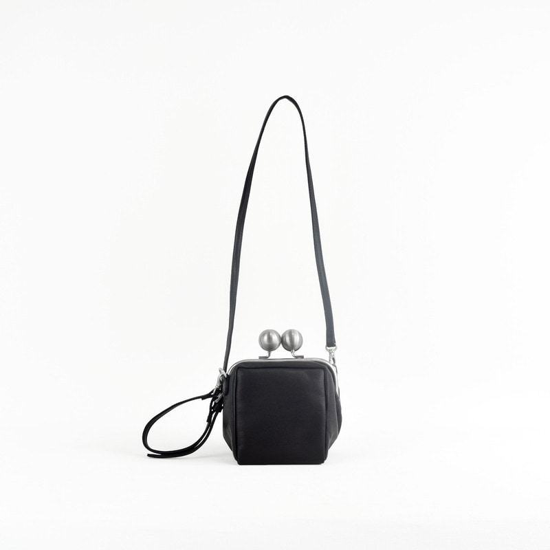 kawa-kawaのアイコン「大きな口金」を使用した個性的なサイコロ型フォルムのレザー斜め掛けポシェット。