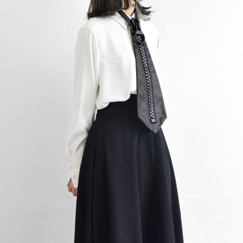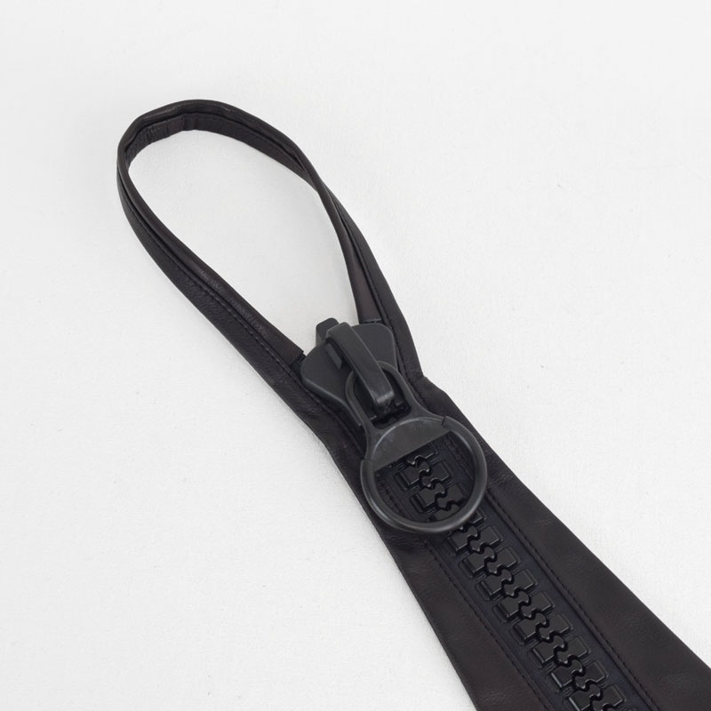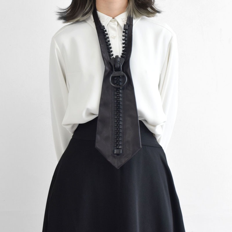 大きなファスナーと上質レザーの組み合わせが印象的なレザーネクタイ。