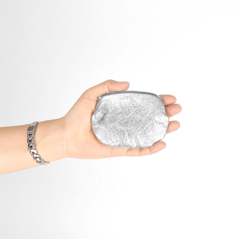 やぎ革にメタリック箔を圧着し、洗い&ヒートドラムシュリンク加工を施した革質が感じられます。