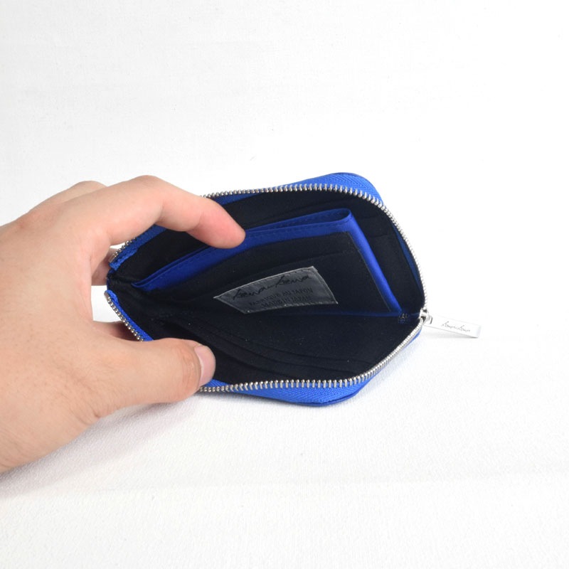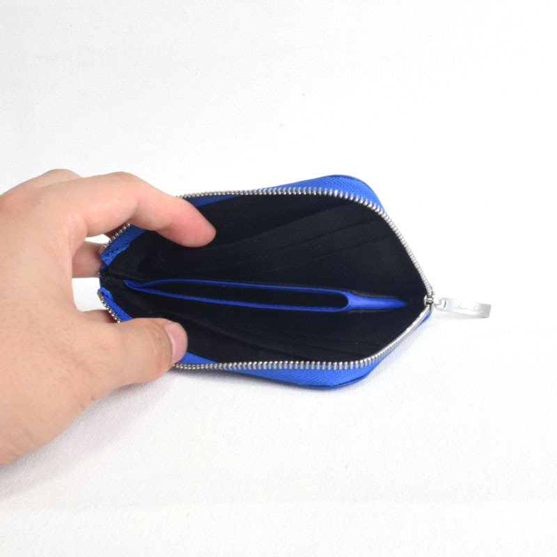 小銭入れはファスナーを使わずに出し入れでき、外側のファスナーを閉じることで小銭がこぼれない安心設計です。