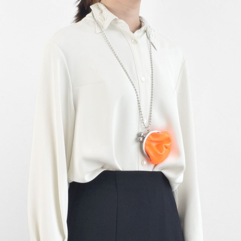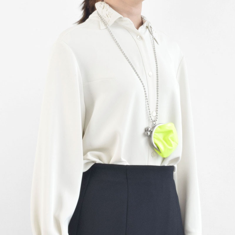 | 素材 | 本体:牛革(蛍光加工) 内装:綿(クロ) チェーン:真鍮(ニッケルメッキ) |