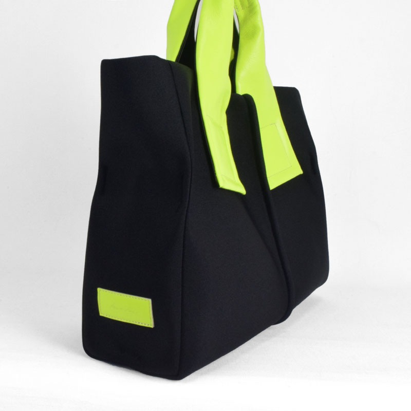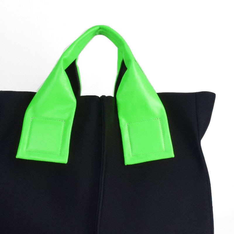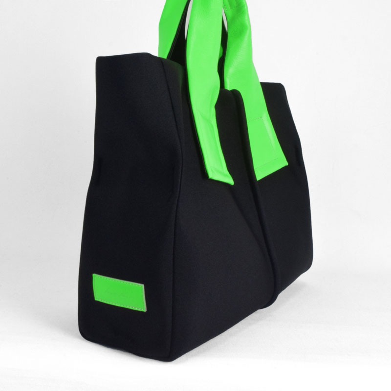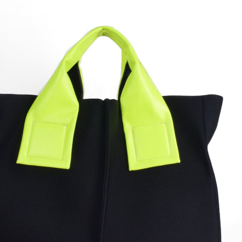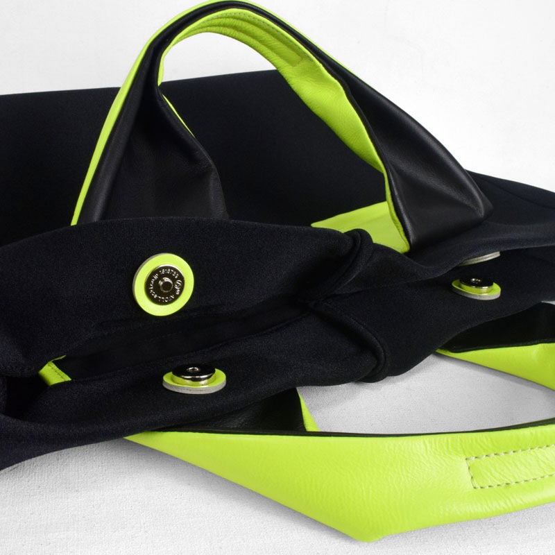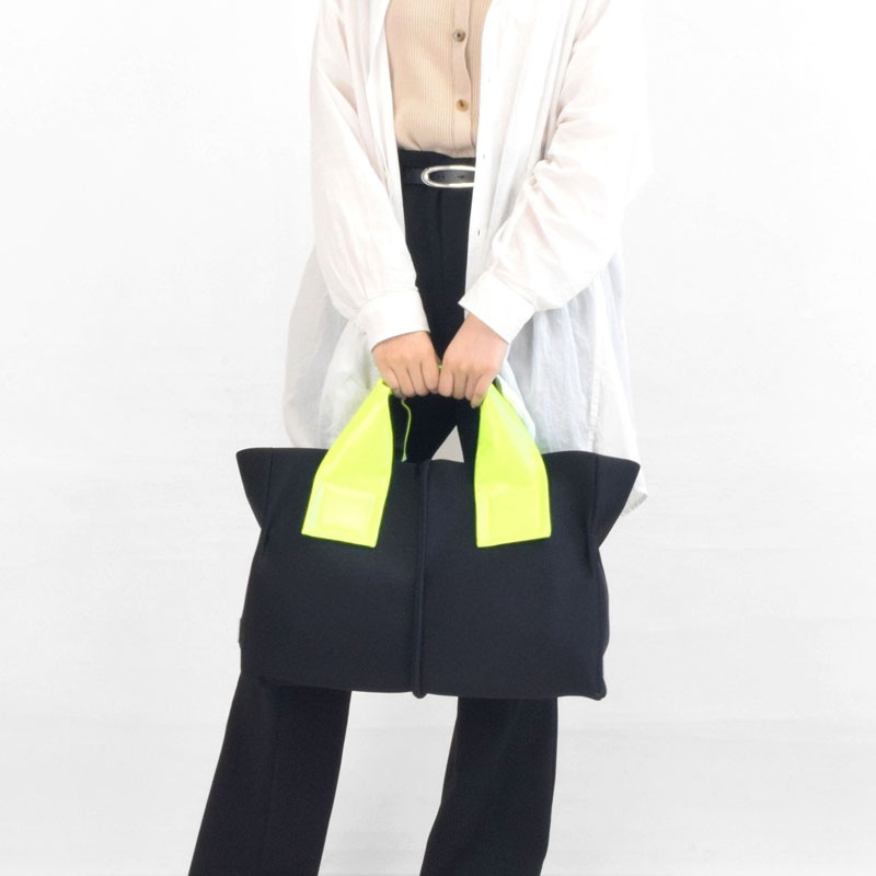 蛍光色フィルムをラミネートした牛革に空打ちでシワ加工を施し、発色の強いアクセントに。