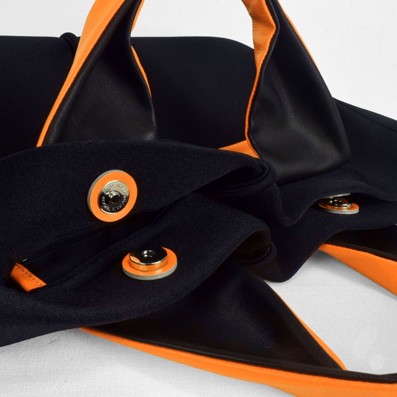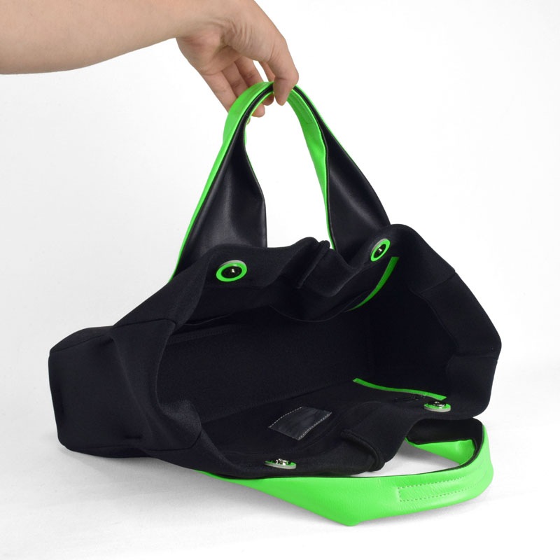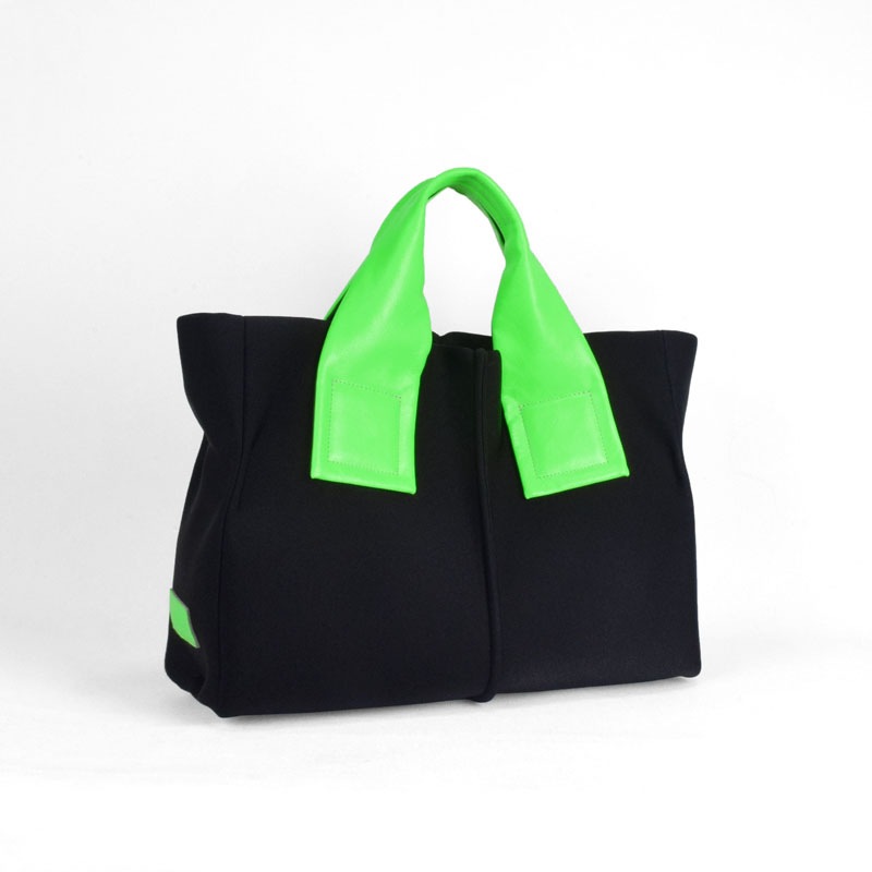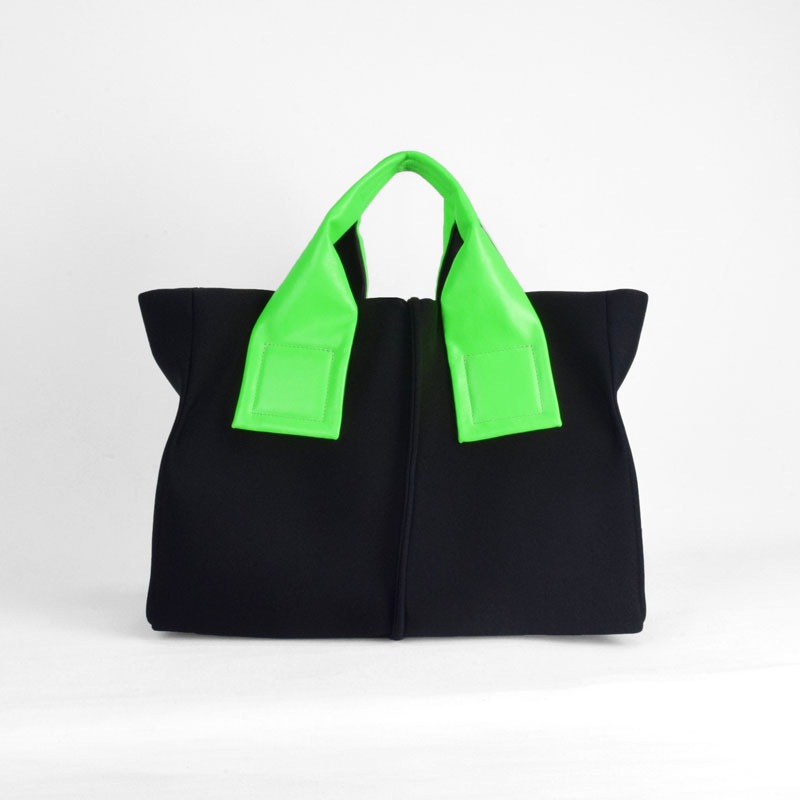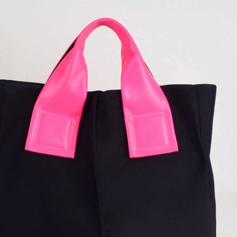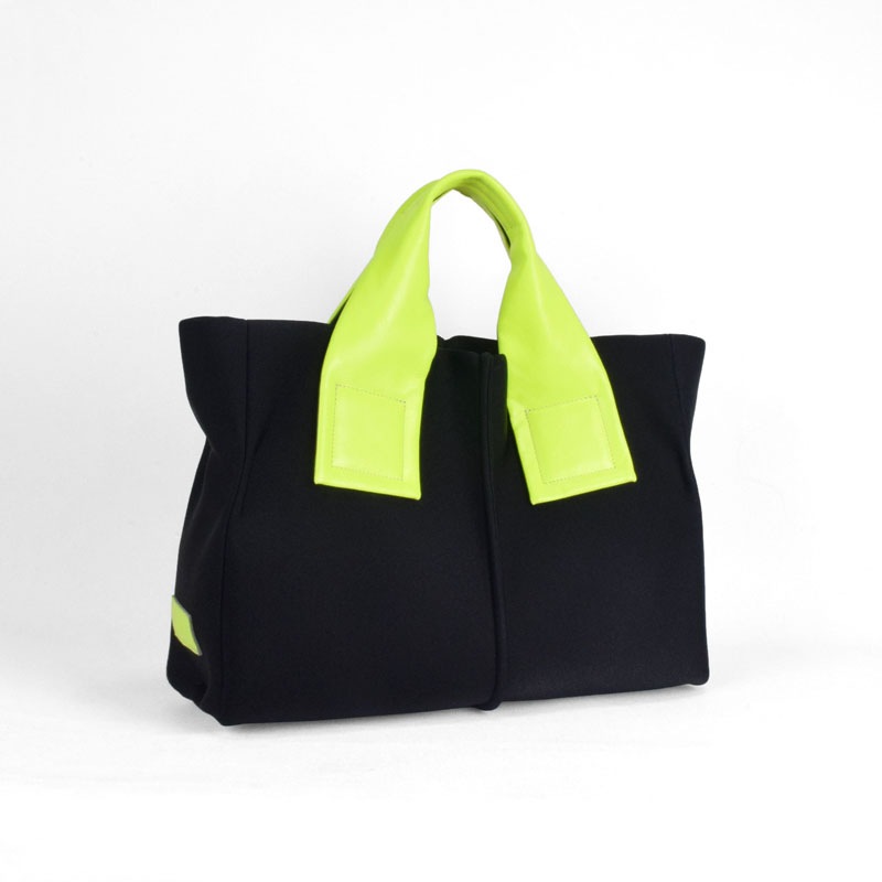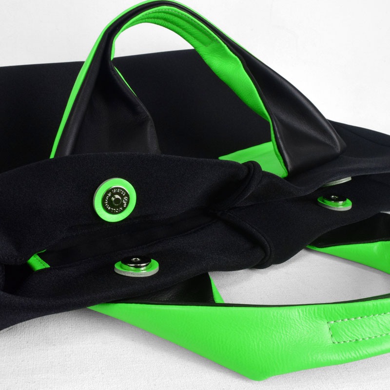 蛍光色フィルムをラミネートした牛革に空打ちでシワ加工を施し、発色の強いアクセントに。
