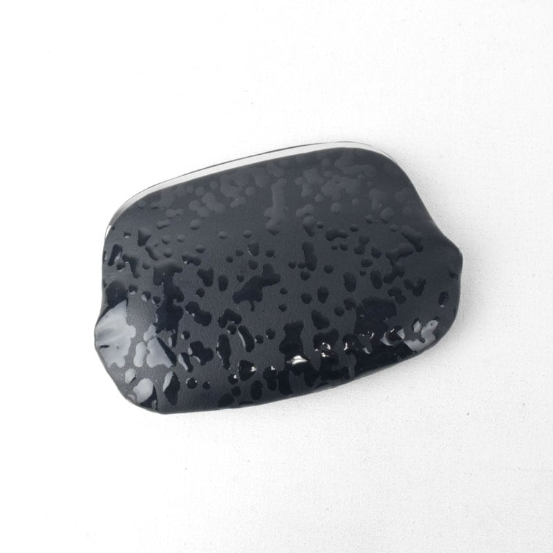 国産牛革に特殊加工でエナメルを吹き付け、水滴がきらめくような質感を再現しました。
