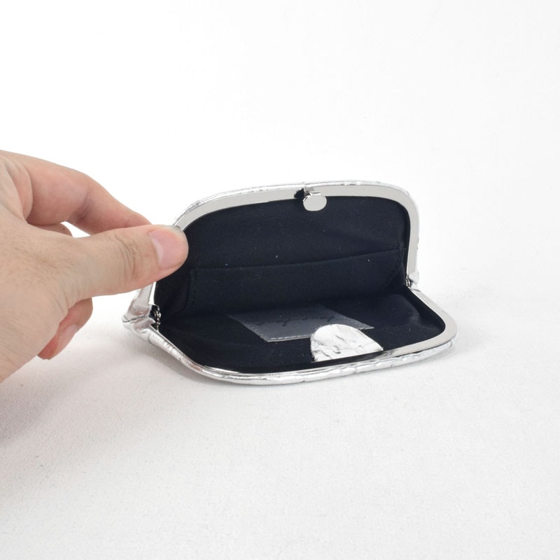 パチンと閉まる口金は中身が飛び出しにくく安心感があり、内装付きで丈夫に仕立てています。