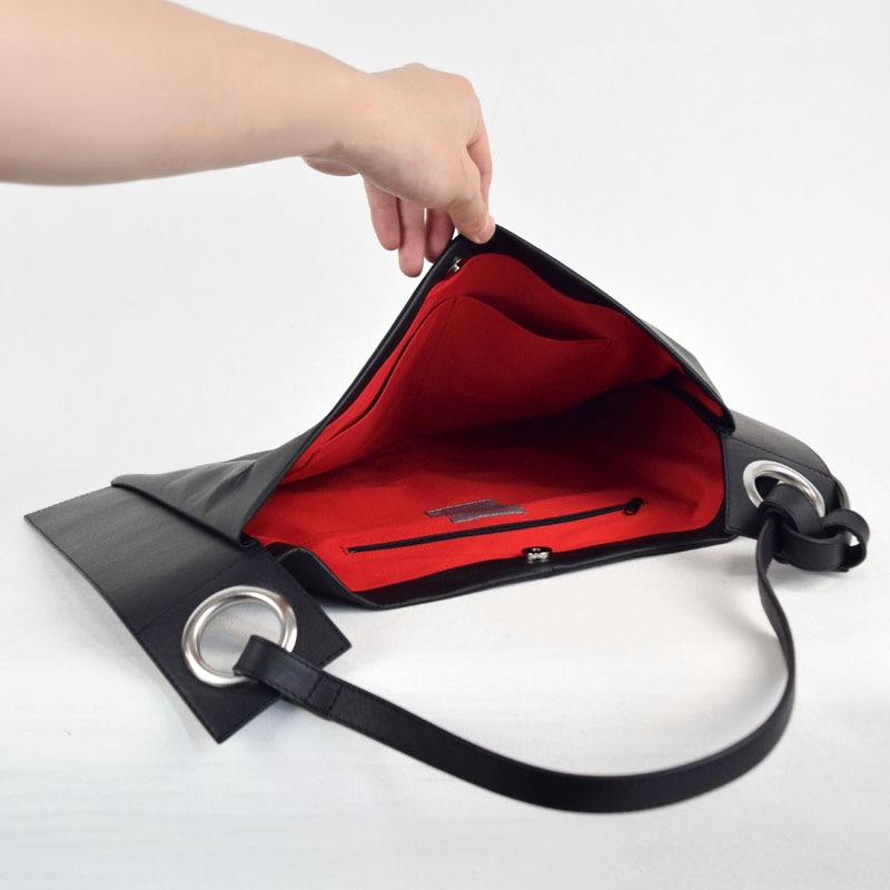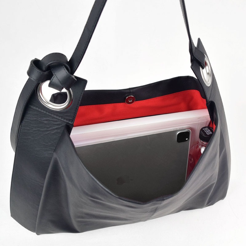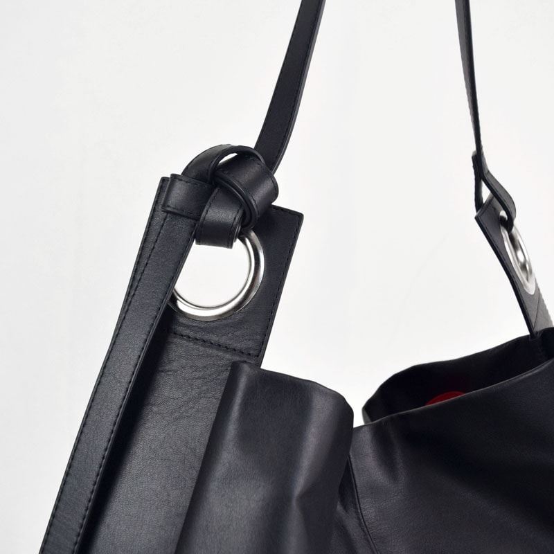 ストラップ付け根に配した「大きなハトメ」は、存在感のあるデザイン性と安心感のある耐久性を両立。