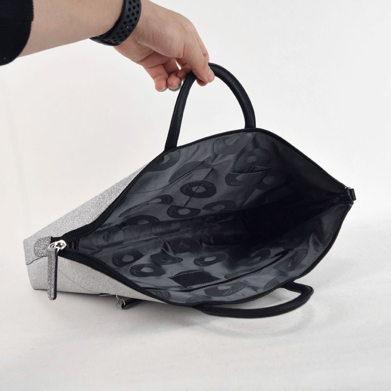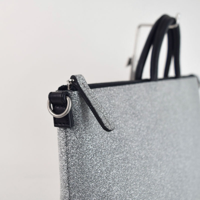 | 素材 | 本体:牛革(グリッターシート箔) ハンドル等:牛革(スーパーソフト) 内装:ナイロン54% ポリエステル46%(ドーナツ柄) |