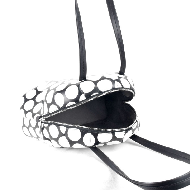 | 素材 | 本体:牛革(水玉ラバープリント) ハンドル:牛革(スーパーソフト) 内装:綿(グレー) |