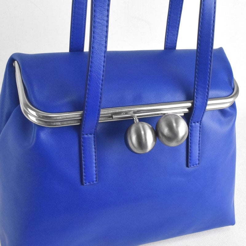 大きな口金は見た目のインパクトだけでなく、パチンとしっかり開閉するため、防犯面でも安心。