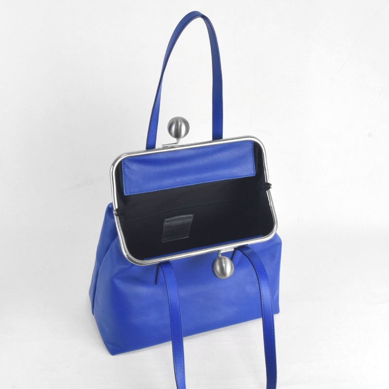 ハンドルは肩掛け可能で、口金の取付角度を前に傾斜させているため、肩にかけたままでもスムーズに開閉できます。