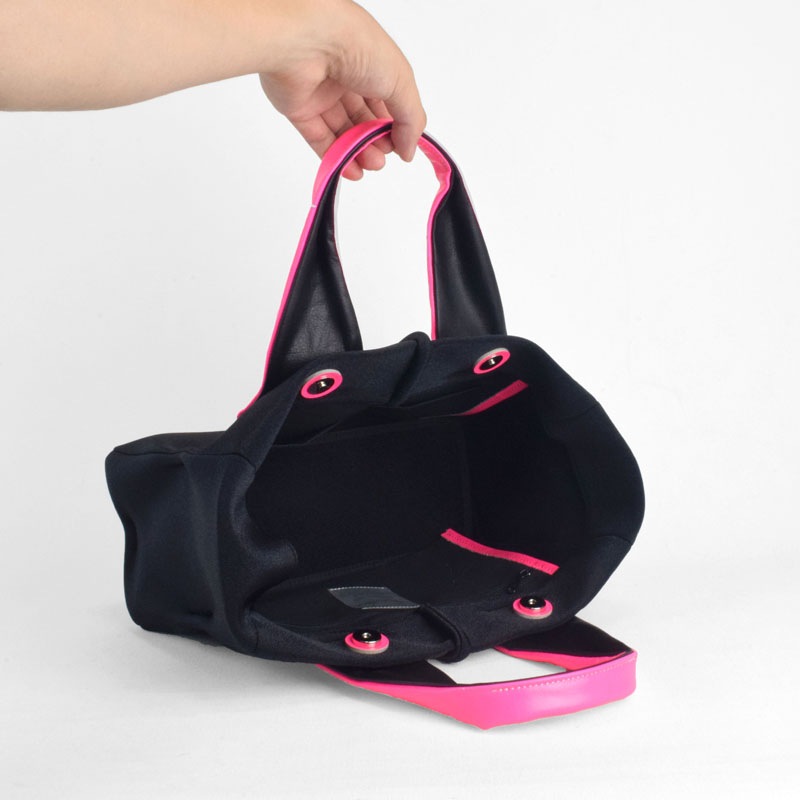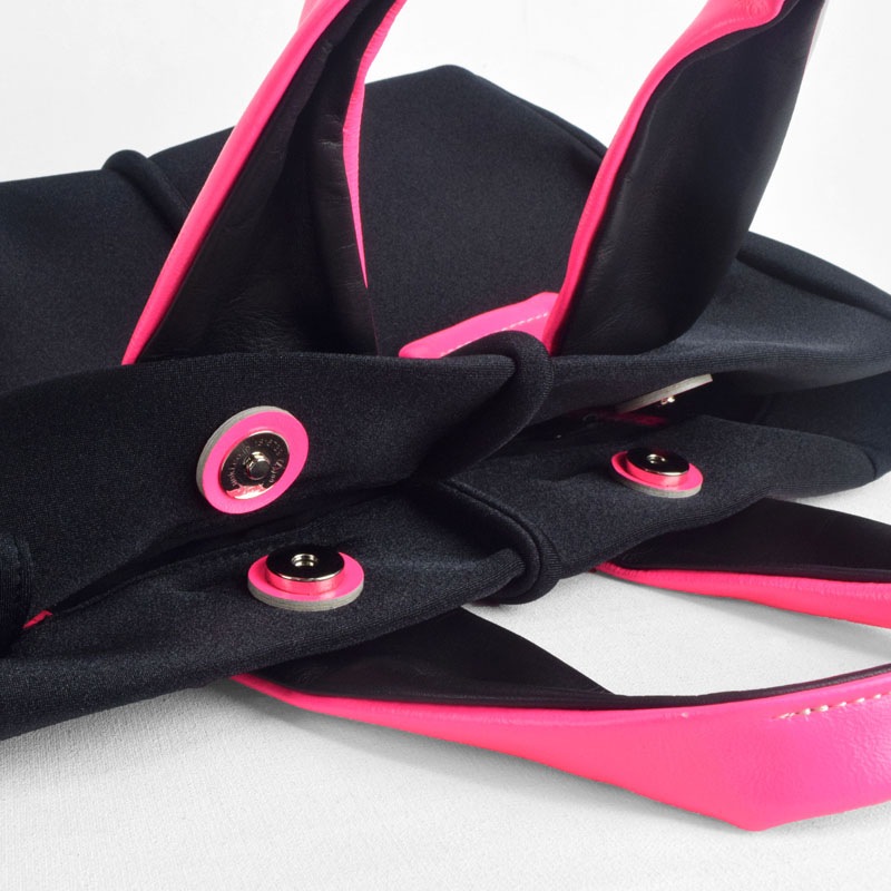 ハンドルは牛革に蛍光色フィルムをラミネート後、空打ちでシワ加工を施した発色鮮やかな素材を使用し、装いのアクセントに最適な存在感のあるレザーです。