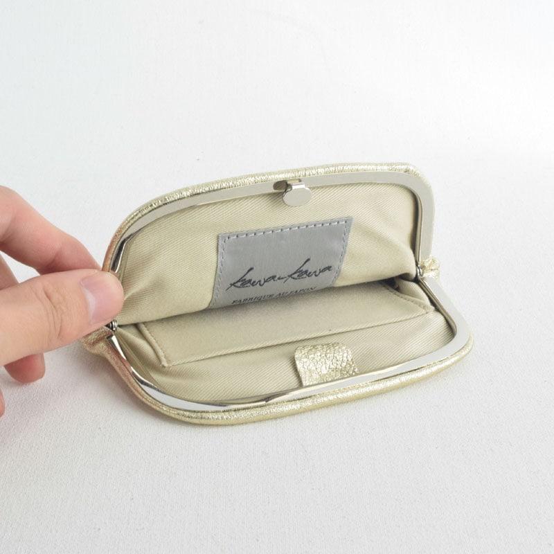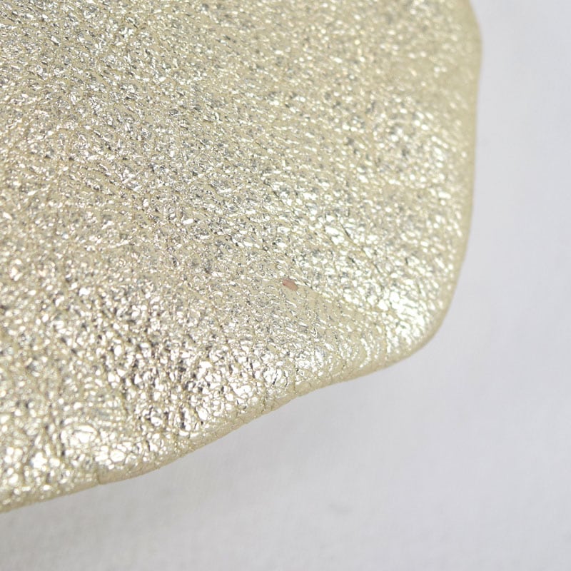 | 素材 | 本体:やぎ革(メタリック箔加工) 内装:綿(ベージュ) |