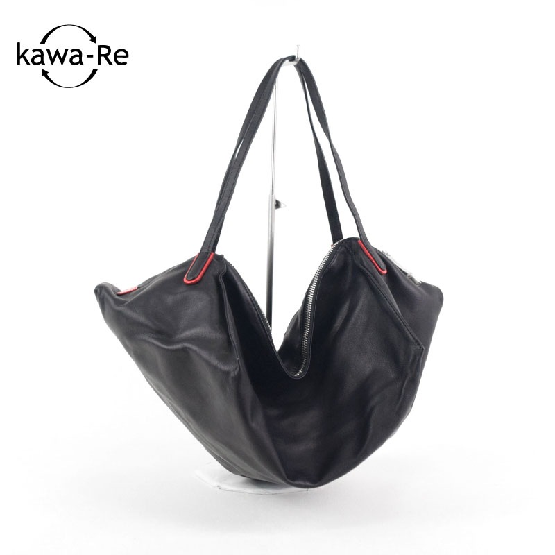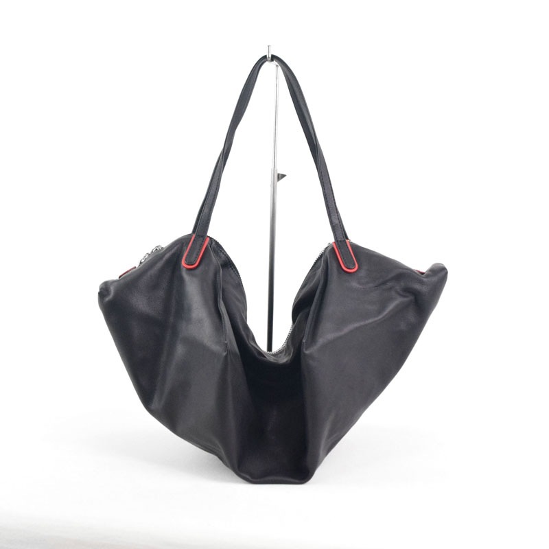 ハンドルを持つことでドレープが出て、くったりとしたシルエットになるデザインで、本体には耳たぶの柔らかさを目指して開発したkawa-kawaオリジナルの牛革「スーパーソフト」を使用。